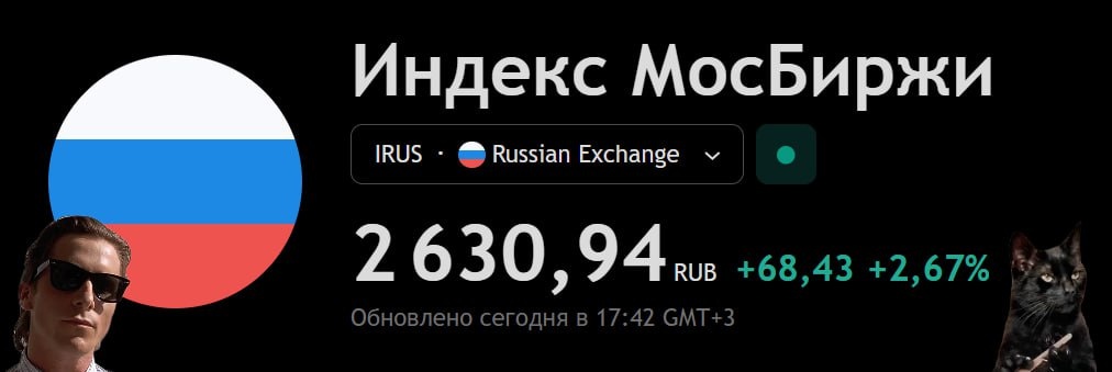 🇷🇺 Индекс Мосбиржи продолжает уверенно отыгрывать вчерашние потери — растем на 2,7