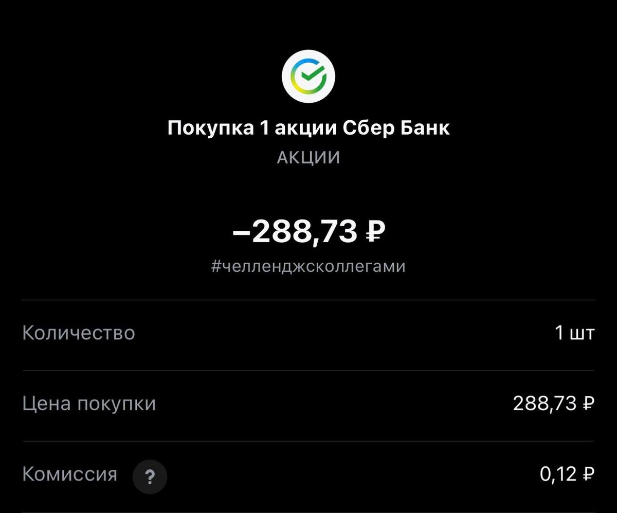 Всем привет! Покупка на сегодня #288, обращаю внимание покупаем один лот. Статистика портфеля на стороннем сервисе, можно посмотреть по "ссылке" Напомню это челлендж с коллегами, каждый рабочий день пополняем брокерский счет на 250 рублей и инвестируем. Если возникли вопросы или есть не понимание, что делать. Задавайте «тут» Покупка #288 🟢 «Сбер» 288.73 rub #SBER 1 лот #каждыйсможет #челенджсколлегами 🚪finbazar ✈️ Стас Мироненко 📹Youtube | 📹Rutube