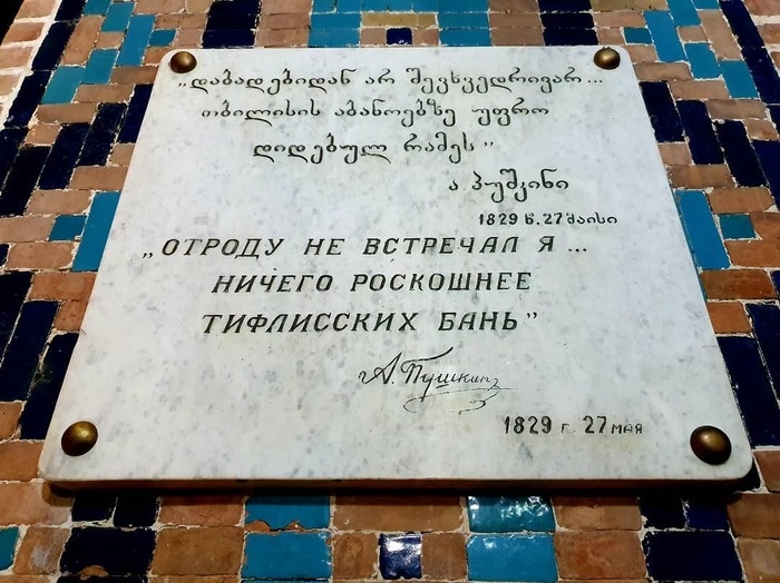 Знаменитые серные бани Орбелиани были воспеты самим Пушкиным, и в их стенах до сих пор хранится табличка с поэтичным утверждением классика о том, что «тифлисские бани — лучшие в мире». Архитектура этой бани уникальна: в отличие от всех других тбилисских бань, скрытых под землей, Орбелиановская — единственная, что расположена на поверхности. Считается, что визит в серную банью — верное средство от похмелья. Проверить это утверждение сложно, а вот её целебные свойства, особенно при кожных заболеваниях, — доказанный факт. Правда, к характерному аромату серы нужно быть готовым заранее. Так кто из вас уже испытал на себе волшебство Орбелиани? Поделитесь своими впечатлениями!