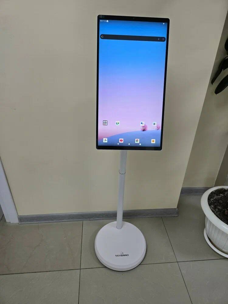 Недавно я начал пользоваться Muveinno Tab D01 — это экран, который не просто показывает видео, а можно перемещать по дому. На встроенных колесах его легко катить в гостиную, на кухню или даже в кабинет. Мне особенно нравится, что не приходится искать место для телевизора или планшета: экран стоит там, где нужен прямо сейчас. 21,5-дюймовый дисплей поддерживает мультитач и имеет встроенную камеру. Я использую её для видеозвонков — собеседники видят меня чётко, а устройство при этом не требует дополнительных штативов или креплений. Батарея держит несколько часов, что удобно, если нужно временно поставить экран в детской или на рабочем столе. Экран можно наклонять и поворачивать. Лично я часто ставлю его в угол комнаты и немного наклоняю для удобного просмотра рецептов или видеоуроков. Подключение к Wi-Fi позволяет сразу запускать потоковые сервисы, а HDMI и USB дают возможность подключать ноутбук или телефон. За несколько недель использования я заметил, что устройство действительно ги
