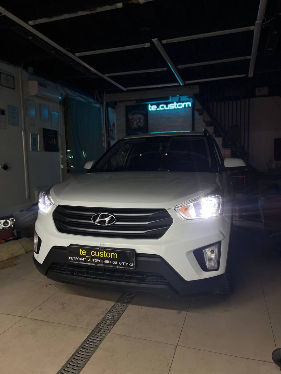 Hyundai Creta 🚢 ✅установлены bi led модули (взамен штатной галогеновой лампы) ✅обслужены фурнитура/ корпуса фар ✅ребилд проводки фар ✅окрас чашки в черный матовый ❤️ ✅габарит перенесен в маску фары на результат 🧐