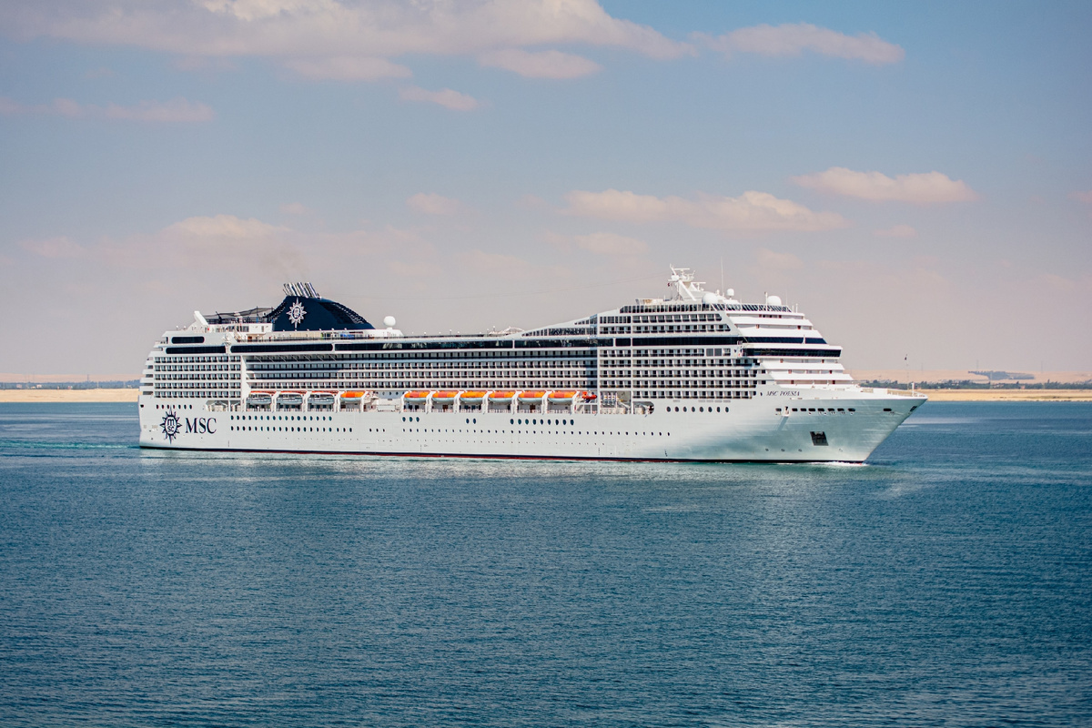 MSC Poesia — круизное судно класса «Musica», построенное во Франции на верфи STX France для швейцарской компании MSC Cruises. На фото оно в районе Суэцкого канала.