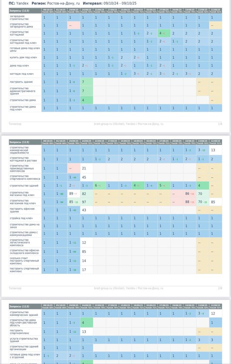 Из 100 запросов, утвержденных клиентом в обоих проектах, 80 в топ-1!!!