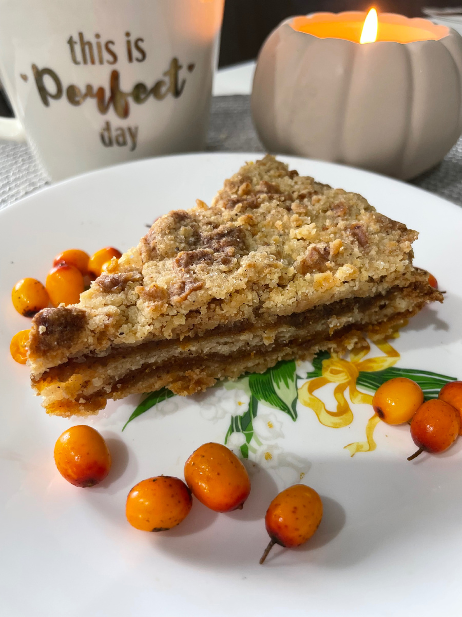 Недавно мама мне привезла мне целую тележку ярких, солнечных тыкв — будто сама осень заглянула в дом с подарками. И, конечно, первым делом я решила испечь тыквенный пирог — тот самый, что наполняет дом ароматом корицы и уюта, помогает прочувствовать настроение октября и делает вечер по-домашнему тёплым. Не каждый тыквенный пирог удается идеально — иногда тесто выходит сухим, иногда начинка слишком влажная. Но этот… Этот получился просто волшебным — нежным, воздушным, ароматным и тающим во рту вкусом. И я не могу не поделиться рецептом с вами. Для песочной крошки: Масло сливочное охлажденное - 180 г Разрыхлитель - 1 ч.л. Мука пшеничная - 330 г Сахар - 100 г Соль - щепотка Корица - 1 ч.л. Для начинки: Тыква: 500 г Цедра одного апельсина Сахар - 100 г Орехи грецкие - 30 г Корица - 1 ч.л. Мякоть тыквы натереть на мелкой тёрке. Апельсин тщательно помыть, высушить и натереть цедру на мелкой терке, добавить к тыкве. Туда же добавить половину сока апельсина, сахар, измельченные грецкие орехи