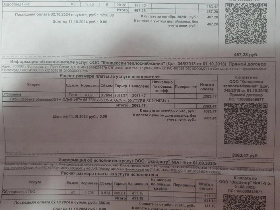 Жители одного из многоквартирных домов в Краснооктябрьском районе Волгограда возмущены неожиданными начислениями за отопление. Несмотря на то что отопительный сезон в городе еще не начался, в сентябрьских квитанциях появились счета на тысячи рублей. — Получаем платежки за сентябрь, и там нам «Концессии теплоснабжения» выставили счет… У меня, например, двухкомнатная квартира — 6400 рублей. За отопление, которого не было ни дня! — рассказала одна из местных жительниц. — В управляющей компании сказали, что начисления делает не она, а «Концессии». По словам жильцов, в теплоснабжающей организации им ответили, что это перерасчет за 2023 год, однако объяснить детали начислений не смогли. Некоторые горожане получили счета на 7–9 тысяч рублей. — Нам сказали: «Платите, а потом через суд будем решать». Это самоуправство и чистой воды обман, — добавляют жильцы. Люди намерены обратиться с коллективной жалобой в Госжилнадзор и прокуратуру, чтобы добиться пересмотра начислений и проверки работы компа