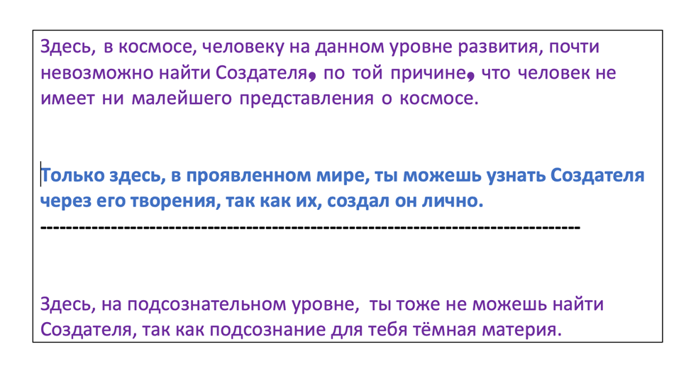 ВЫВОД. Бог проявлен в материи – это единственный шанс у человека, узнать кто он.