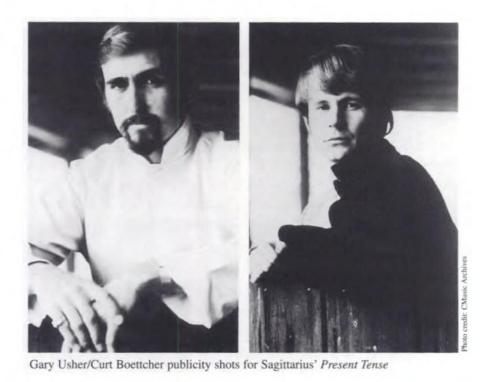 Общение между продюсерами наладилось, Ашер для записи одной из песен пригласил Курта в качестве вокалиста (друзья из Beach Boys в это время гастролировали), и взаимная удовлетворенность совместной работой привела к партнерскому сотрудничеству в проекте Sagittarius. А Columbia Records по рекомендации Ашера берет Бёттчера штатным продюсером и выкупает права на записи Ballroom у предыдущего лейбла Курта. Компаньоны стали собирать песни для альбома "Present Tense": три готовых кавера Ашера от сторонних авторов (в том числе уже ставший хитом "My World Fell Down"), пять песен от Ballroom, сочиненных Бёттчером с прежними коллегами или сольно, остатки добиваются парой песен из закромов Курта и единственной - авторства Ашера. Даже в загашнике кое-что осталось.