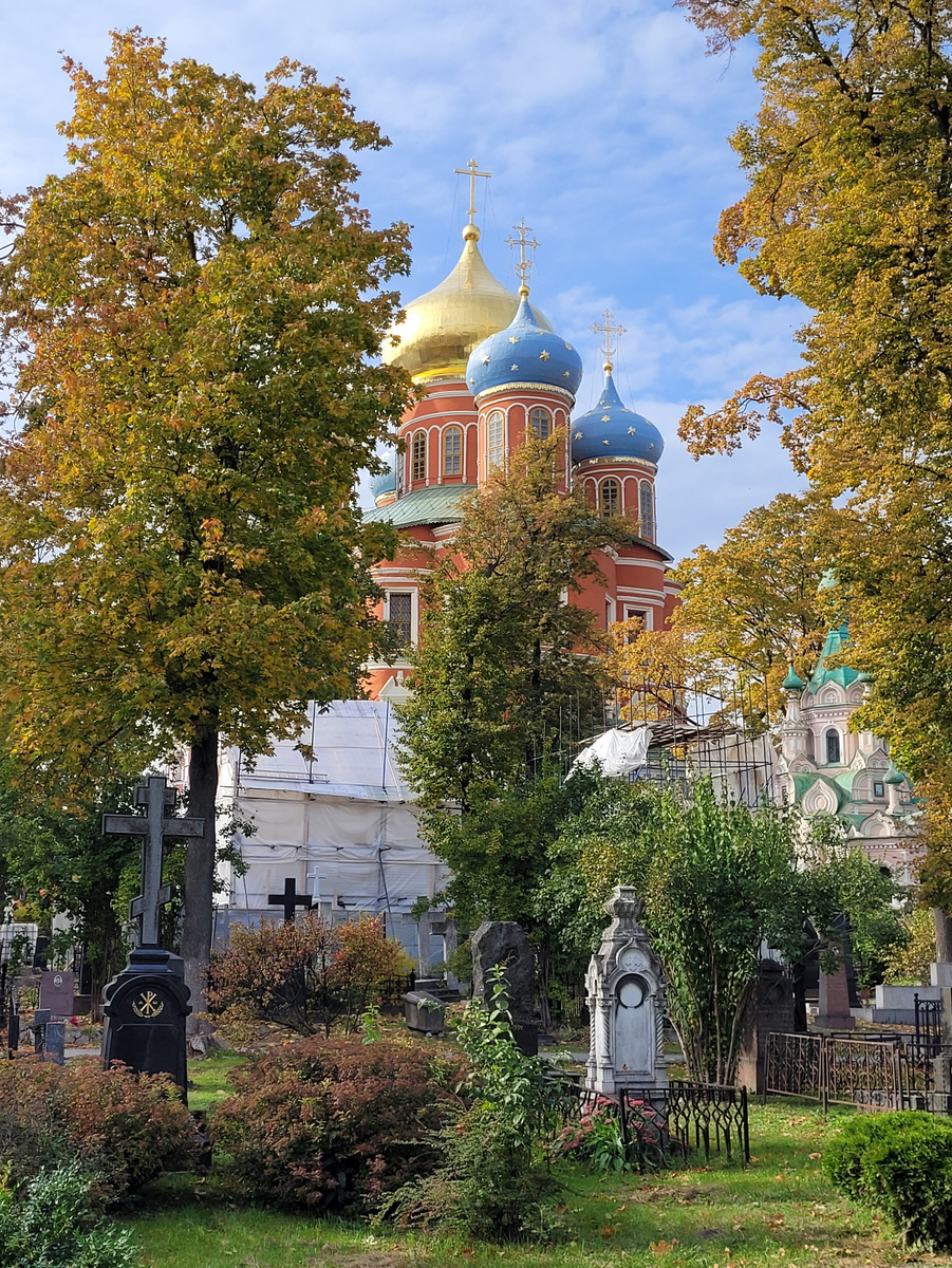 Несколько осенних фотографий из некрополя Донского монастыря в Москве. Последние несколько лет на территории во всю идет ремонт. Вдоль стен кучи стройматериалов и мусора, часть надгробий некрополя спрятаны и некоторые стены в лесах. В тот день у входа всех встречали новые колокола. Ждут своего часа, чтобы занять место на колокольне. Несмотря на кажущуюся неразбериху из-за ремонта, на территории некрополя и возле монастыря все также тихо и прекрасно, особенно солнечным осенним днем. Может показаться, что из-за ремонта на территории шумно и хаотично. Это не так. Есть тихие, пустынные уголки, да и вообще: на дорожках некрополя спокойно и умиротворенно. В монастыре шикарный розарий и в первых числах октября цветы еще вовсю радовали людей. Рабочие во всю сгребали листву, хотя, на мой взгляд, она всегда добавляет поэзии и приятного минора в настроение. С листьями всегда чудеснее. Здесь, напротив лавочки, было много кошек, которые занимались своими важными делами: спали, ходили туда-сюда, ино