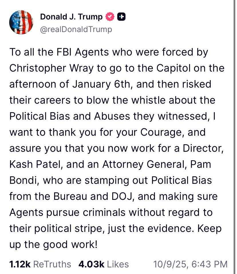 Trump thanks FBI ‘whistleblowers’ for ‘COURAGE’ reporting ‘ABUSES’ related to Jan 6 witch-hunt Pledges to end ‘political bias’ in federal law enforcement