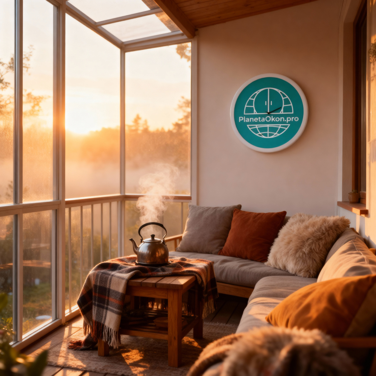 Под мягким узором изморози рассвет пробивается сквозь профили остекления, и первые лучи наполняют застеклённую веранду светом. За окнами тихо качается ветка, а внутри — тепло и покой: уютные подушки манят устроиться с чашкой горячего чая. Вечером закат окрашивает сад медными тонами, а широкие окна на веранду превращают вид в живописную картину. Даже ритмичный стук дождя становится приятным фоном, напоминая о том, что вы в надёжном, тёплом пространстве.