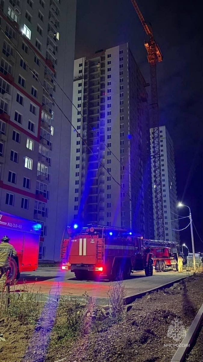 В столице Башкирии загорелась крыша 25-этажного строящегося дома