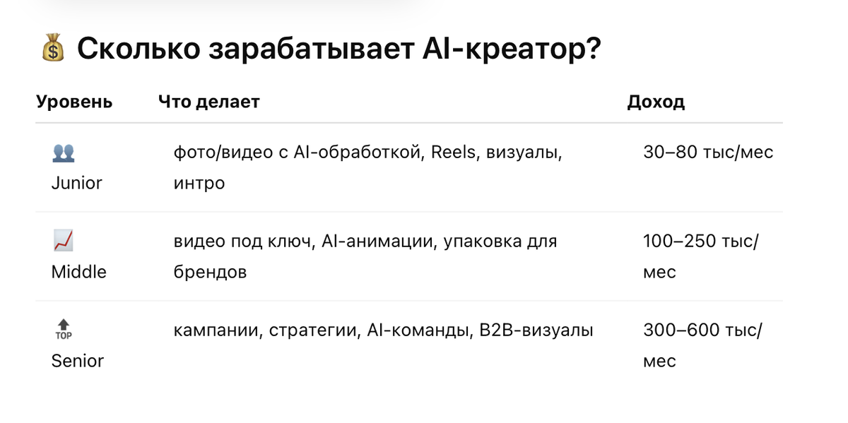 AI-креатор — это новый формат визуального специалиста, который создаёт контент (видео, фото, графику, анимацию) с помощью нейросетей: быстро, нестандартно и под задачи рынка. Это не про то, чтобы «нажать кнопку». Это про то, чтобы: AI-креатор — это автор + продюсер + технолог, собранный в одном человеке. Но это не значит, что тебе придется работать за троих. Читай дальше 🏠 Если ты из фото/видео/дизайна — внедри AI в процессы и начинай продавать визуальные продукты под ключ