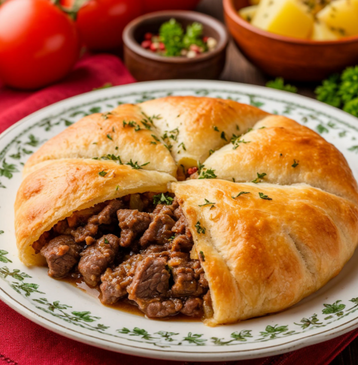 Сегодня мы приготовим чуду с мясом и картошкой по-даргински – это невероятно вкусный и сытный пирог, который порадует всю семью! Начнем с приготовления теста. В глубокую миску просейте 400-450 грамм муки. Добавьте к ней 2 чайные ложки сахара, 7 грамм сухих дрожжей и 0,5 чайной ложки соли. Тщательно перемешайте все сухие ингредиенты. Влейте в миску 300 мл теплого молока и 6 столовых ложек оливкового масла. Замесите мягкое и эластичное тесто. Накройте миску с тестом полотенцем и поставьте в теплое место на 1-1,5 часа для подъема. Пока тесто подходит, займемся начинкой. Очистите 2 картофелины и нарежьте их мелкими кубиками. Одну репчатую луковицу также мелко нарежьте. В глубокой миске смешайте 400 грамм говяжьего фарша, нарезанные картофель и л