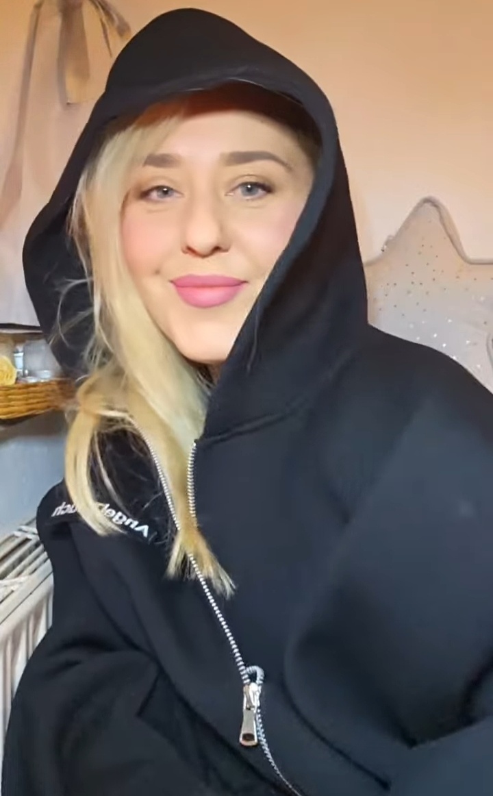 На фото: Оленька демонстрирует изделие из своей первой коллекции - худи-трансформер.