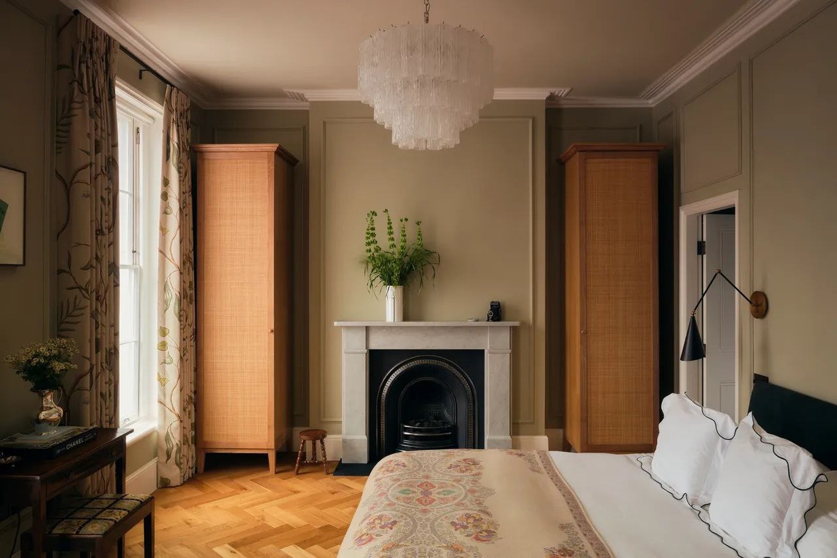 Красивая люстра над обеденным столом- эффектный декоративный прием, но и в спальне она смотрится уместно. Стеклянные люстры, в частности, создают особые световые узоры и тени, добавляя уюта. #дизайнинтерьера #дизайнеринтерьера