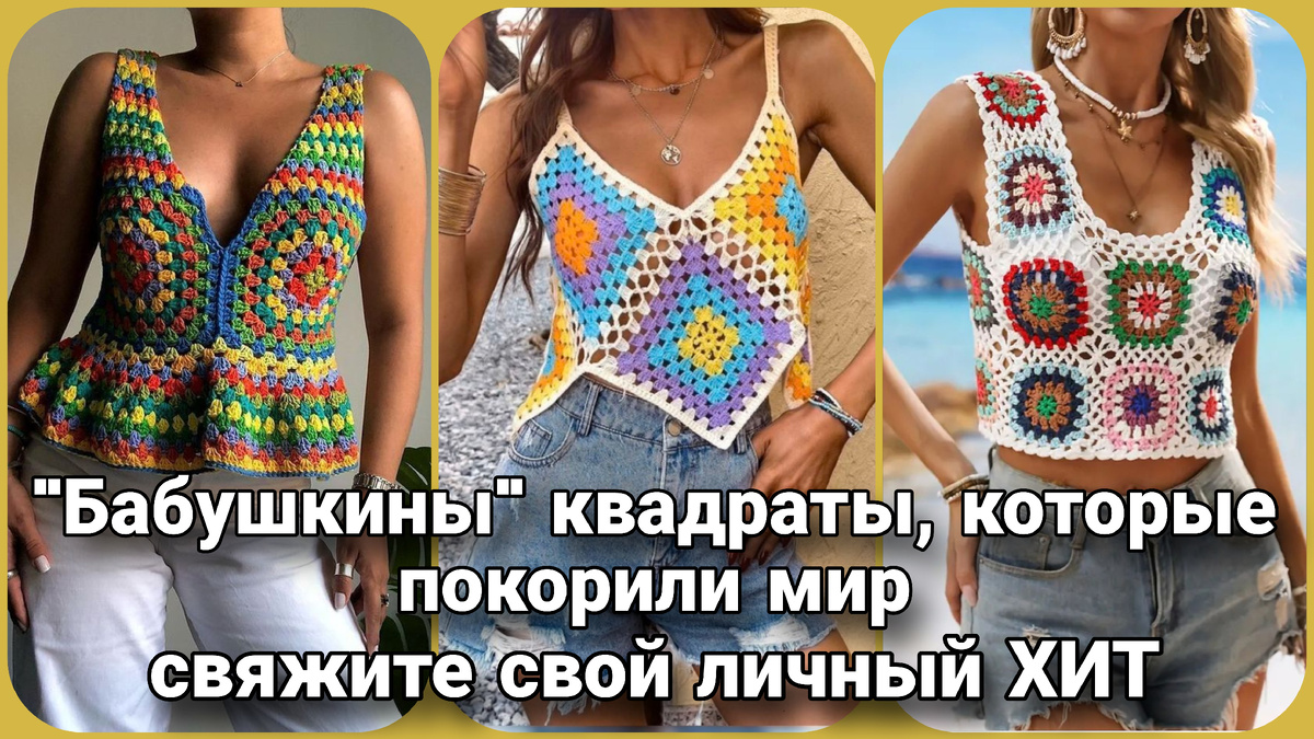 В мире вязания крючком есть техники, которые проходят сквозь десятилетия, не теряя своей актуальности. Одна из них — знаменитый «бабушкин квадрат». И если раньше из этих ярких мотивов создавали в основном одеяла и подушки, то сегодня они переживают настоящий ренессанс в мире моды. Лёгкие летние топы, ажурные майки и даже купальники, собранные из квадратов, стали хитом сезона и воплощением стиля «хэнд-мейд» с ноткой ностальгии.