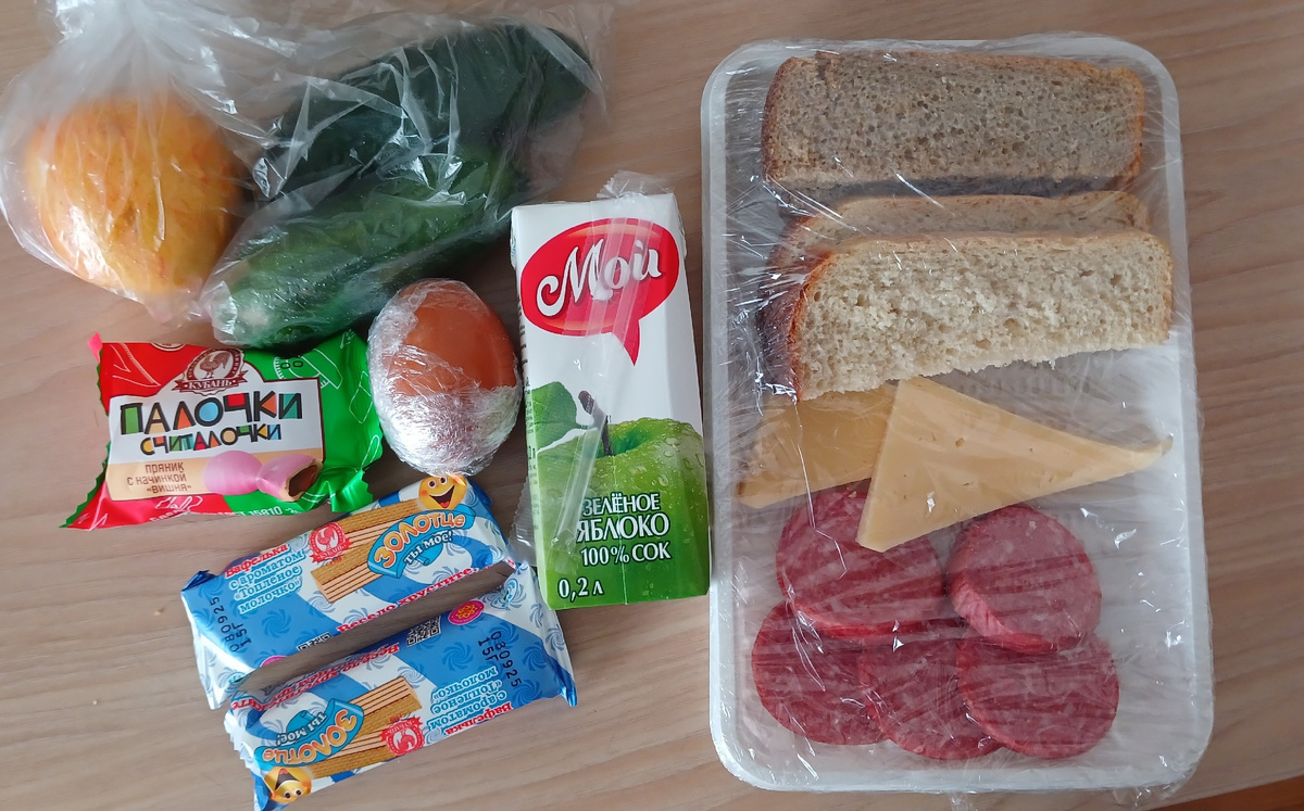 В этот день с утра мы выезжаем из санатория. У нас в запасе в общей сложности 4 сухих пайка - компенсация за 2 обеда, которые мы пропустили. С утра заварили кофе и чай, съели вареные яйца и бутерброды с сыром и колбасой В самолете кормили очень скудно: малюююсенький сэндвич (правда, горячий был) и стакан чая с лимоном. Это даже не еда, а легкий перекус Поэтому к моменту отправления аэроэкспресса из Шереметьево, мы уже были голодные как волки. И сразу же снова своими сухпайками подкрепились. Ужинали дома. Я оставляла в морозилке плов с курицей, разогрела его. Порезали овощи их своих сухпайков. и на десерт были фрукты Меню год назад Надо было бы ревизию продуктов провести, но сил на это не было. Отложила до завтра. С вечера составила меню на следующий день, достала из морозилки сыр, куриный бульон, печенку куриную