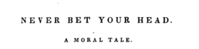 "...я предлагаю вниманию публики нижеследующую печальную историю,..., мораль которой совершенно ясна и несомненна , ибо всякий, ..., может узреть ее в заглавии..." История Э.А.По "Не закладывай черту своей головы" довольно проста. Помимо очевидной насмешки над необдуманными поступками, в рассказе есть ирония над трансценденталистами и направленность против литературного педантизма. По поводу второго, автор напрямую говорит, что это является причиной написания этого рассказа. Трансцендентализм был довольно популярным движением в америке 19-го века. "Этой болезнью" заболел и главный герой рассказа Тоби Накойчерт. Нам рассказывают о его нелегком детстве и как это повлияло на его привычку закладывать свою голову, споря о разных глупостях. На основе этого мы видим неизбежность судьбы главного героя. Стоит отметить, что рассказы Эдгара Алана По отличаются рационализмом. Все мистические события в историях рационально объяснимы. В этой же истории автор противопоставляет трансцендентализму, с