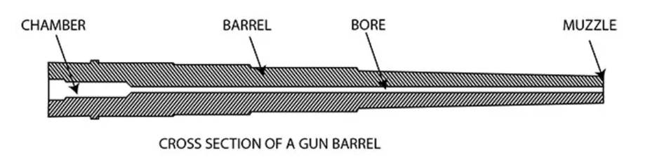 На изображении: патронник — ствол — канал — дульный срез. Поперечное сечение ствола оружия. Вы поймете, что ствол обкатан, когда начнете стрелять из него точными группами