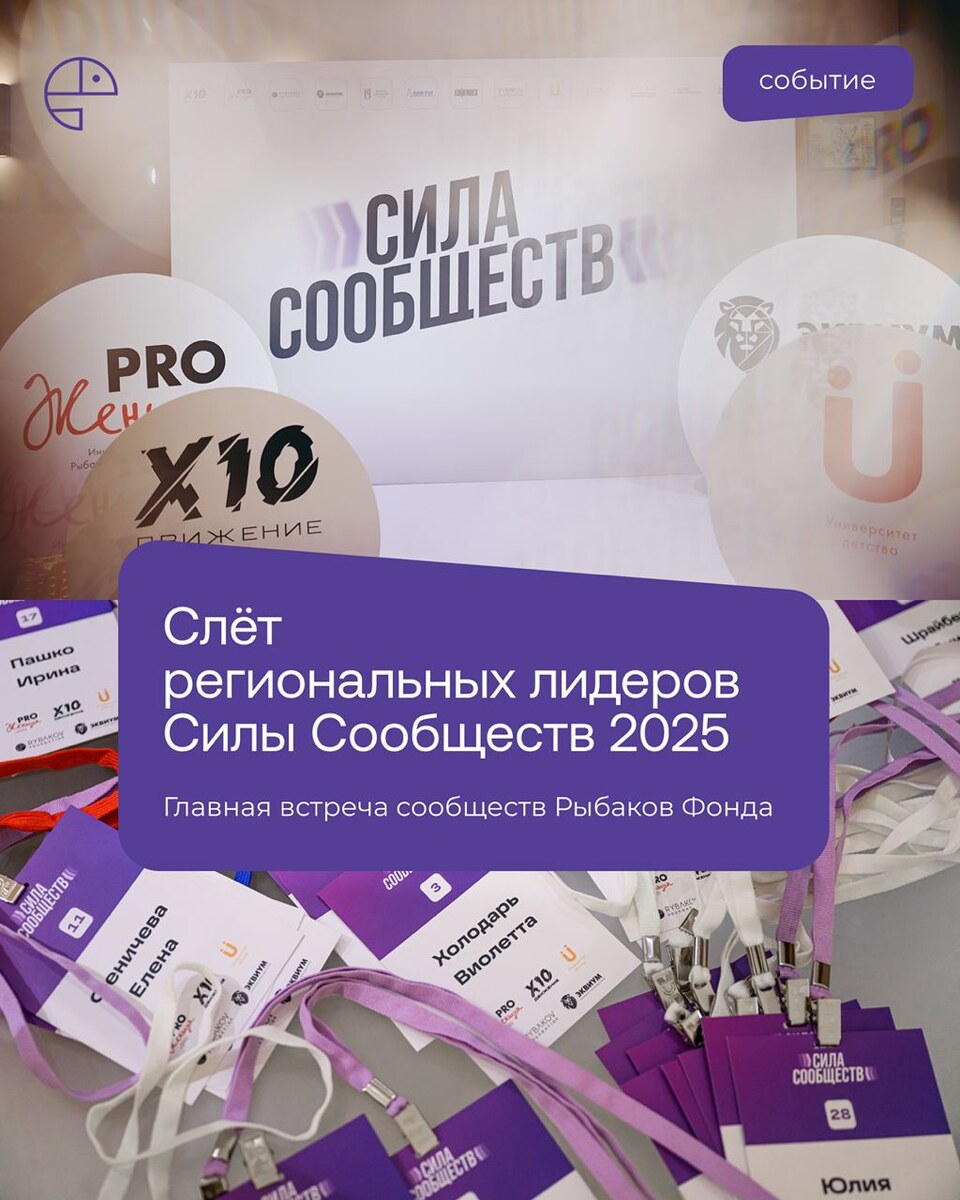 Слёт региональных лидеров Силы Сообществ: встреча, которая заряжает на год вперёд Мы продолжаем рассказывать о главных событиях этого года. Одно из них — масштабный Слёт региональных лидеров Силы Сообществ в Москве. Для экосистемы Рыбаков Фонда это особая встреча: здесь объединились педагоги, предприниматели, люди образования и творчества, чтобы почувствовать то, что невозможно измерить цифрами — силу объединения и опыт принадлежности к живому сообществу За 4 дня мы прожили десятки событий и разговоров: 💡 Увидели, как школа может быть настоящим Домом — в образовательном туре по «Фениксу» вместе с «Университетом детства» 💡 Искали новые смыслы дополнительного образования на Educational JAM с Сергеем Казарновским и командой гимназии «Универс» 💡 Вели глубокую Эволюционную беседу о будущем сообществ с Игорем и Екатериной Рыбаковыми, Татьяной Юстус и Марком Кукушкиным 💡 Делились личными открытиями и поддержкой на крыше RYBAKOV TOWER в кругу Игоря Рыбакова и Егора Евланникова, сооснова