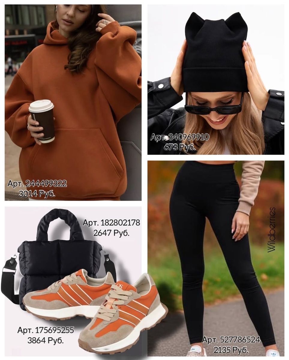 Все три образа легко перемешиваются между собой: карамельный верх дружит с чёрными легинсами и серыми кроссовками, графитовый пуховик можно надеть и к широким джинсам, а скульптурная сумка добавит статуса любому спортивному комплекту. Сохраняйте артикула, ориентируйтесь на советы по посадке и длинам — и ваши повседневные выходы будут выглядеть современно, аккуратно и очень продуманно.