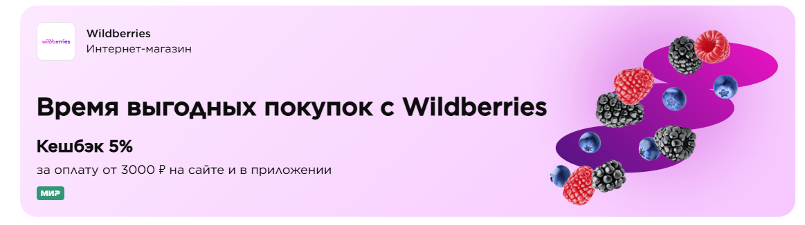 С 1 по 31 октября НСПК запускает акцию: можно вернуть 5% за покупки на WB, если оплачивать картой МИР. ВАЖНО: участвуют только те, кто раньше не платил на WB именно картой МИР. Условия: И приятный бонус: кешбэк совмещается с кешбэками банков.