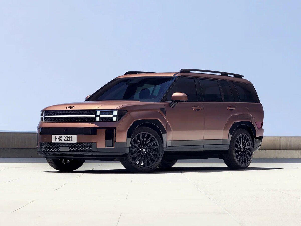 Внешне Santa Fe 5-го поколения это чисто корейский стиль с замахом на премиум. Передняя часть с огромной решёткой радиатора в форме "каскада" (фирменный элемент Hyundai), LED-матричными фарами и дневными ходовыми огнями выглядит солидно и агрессивно. Боковой профиль с плавными линиями и колёсными арками на 18-20 дюймов (в зависимости от комплектации) подчёркивает динамику. Задняя часть с интегрированными фонарями и спойлером добавляет спортивности. Габариты- длина 4,83 м, ширина 1,9 м, высота 1,69 м идеально для парковки в городе. Цвета от классического белого до яркого синего или красного, плюс два тона кузова для эксклюзива. В общем, выглядит как автомобиль из будущего, но без перегибов не "киберпанк", а элегантный SUV и это замечательно)