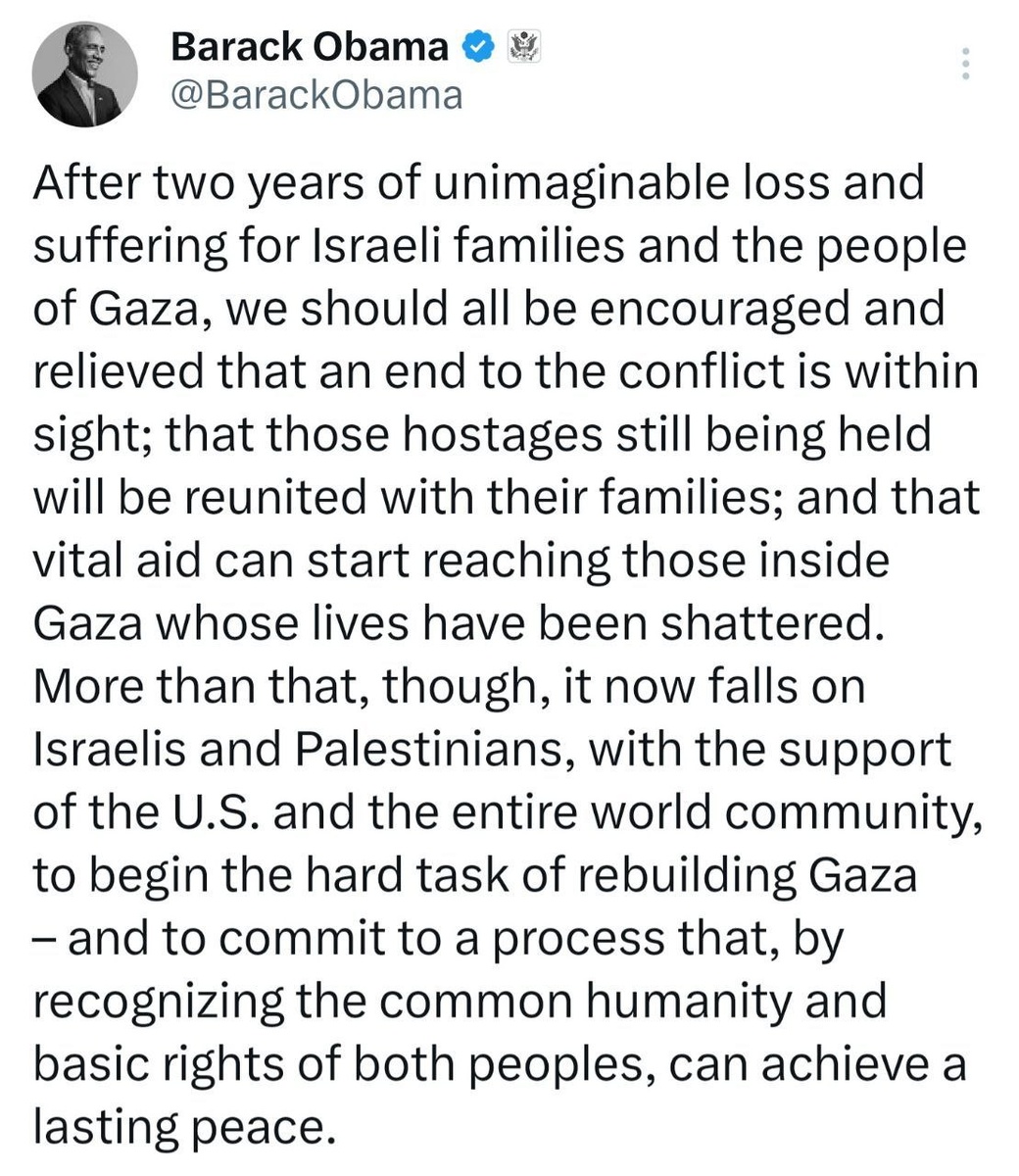 Obama AVOIDS giving Trump credit for success of Gaza peace plan — says everyone should be 'relieved