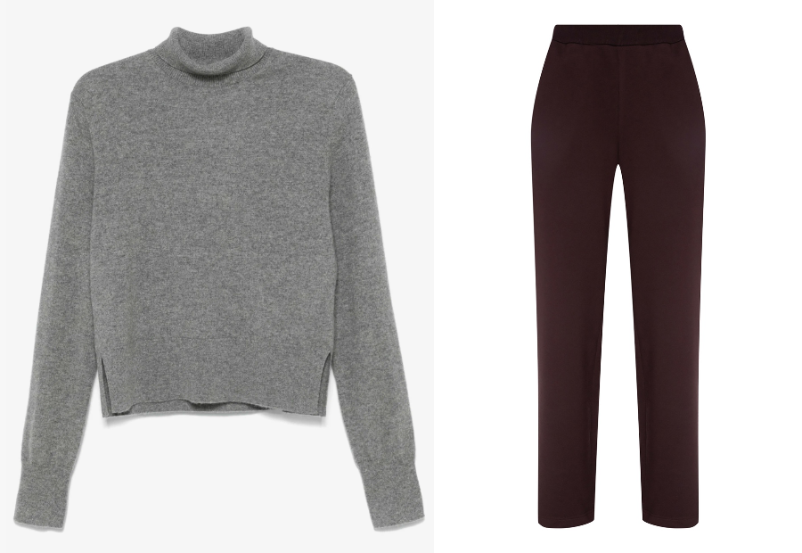 Носила недавно подобный костюм на деловую встречу — серый топ в рубчик и брюки того же оттенка, но гладкой фактуры. Поверх накинула чёрное пальто. Чувствовала себя удобно весь день, при этом выглядело всё достаточно официально.