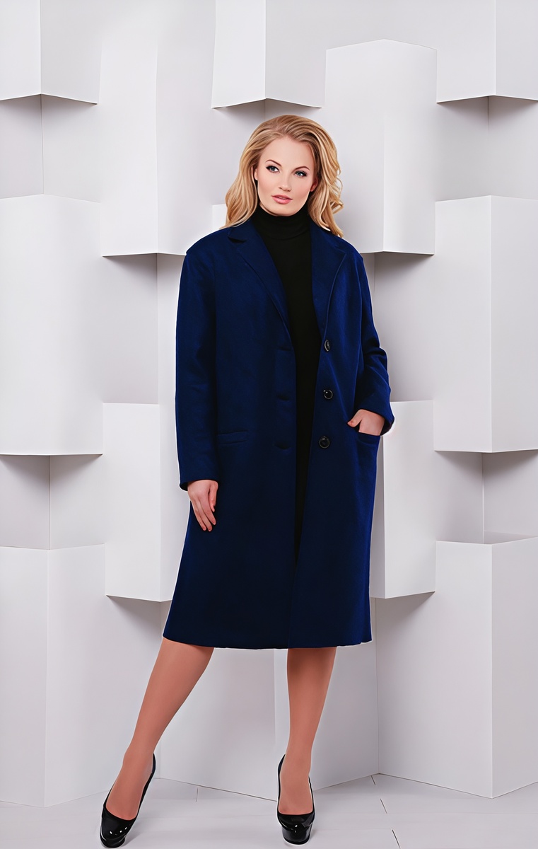 Пальто прямого силуэта, длиной до колена или чуть ниже. Ткань шерстяная, плотная. Цвет классический: серый, верблюжий, чёрный, тёмно-синий. Воротник стояче-отложной или просто воротник-стойка. Шарф в тон или контрастный, перчатки кожаные.