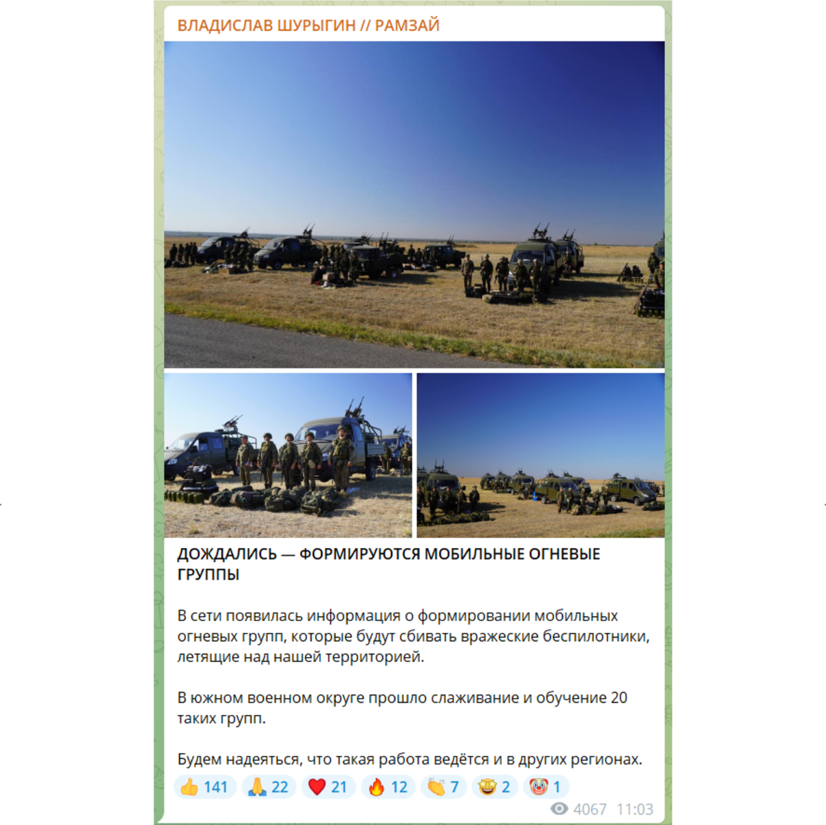 Не хотел возвращаться к этой теме – создание и применение мобильных огневых групп ПВО (МОГ ПВО) для защиты городов и объектов в глубине территории. Она уже достаточно заезжена и избита, но приходится.