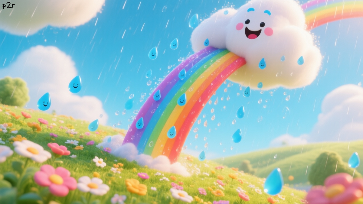 В большом пушистом Облаке жили-были тысячи маленьких дождинок. Они весело резвились и играли, катаясь на серебристых горках-радугах. Скоро всем им предстояло прыгнуть вниз, на землю, чтобы напоить луга, леса и реки.