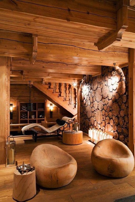 Натуральное дерево в интерьере загородного дома