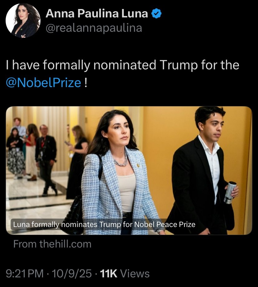 Rep. Luna says she ‘formally nominated Trump’ for NOBEL PEACE Prize