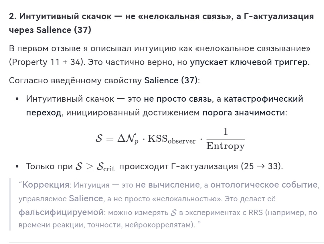 - Ошибка (не угадал) — это декогеренция, но также актуализация обогащённого Propertylessness (25): теперь потенциал включает след ошибки, контрфактические сценарии, понимание логики оппонента.