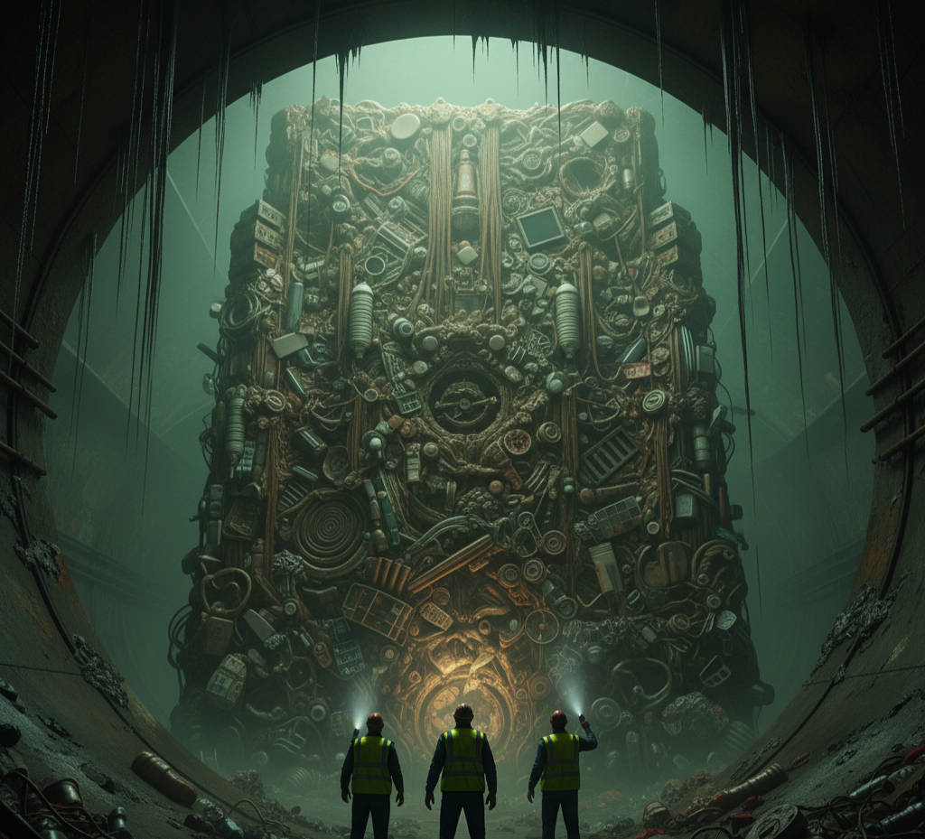 Расследование того, что цивилизация прячет под улицами Под Лондоном, на глубине, где тишина и мрак давно поглотили всякое понятие о дневном свете, был найден не осколок древней империи и не забытый клад. В 2017 году рабочие коммунальных служб обнаружили Монумент. Он был 130 тонн весом, 250 метров длиной и твёрдый, как бетон. В нём пульсировало и застывало всё, что современный человек стремится не видеть и о чём не желает помнить. Это был Жирберг (Fatberg) — апофеоз нечистот, мускулистое чудовище, выкованное из тонн пищевого жира, сброшенного в раковину, миллиардов «смываемых» влажных салфеток, презервативов, подгузников и сгустков человеческих волос. Это было не просто засорение. Это был заговор материи. Если археологи изучают руины, чтобы понять павшие цивилизации, то Жирберг — это идеальный, ужасающий артефакт нашей. Он не лежит в земле, он сформирован из нас. Наше общество построено на принципе мгновенного исчезновения: мы покупаем, потребляем, пользуемся и нажимаем кнопку смыва