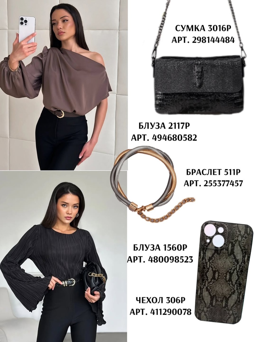 Ваши находки с «Вайлдберриз» складываются в продуманную мини-капсулу: элегантный верх для города и нежный спортивный комплект для повседневности. Здесь всё про баланс — мягкие ткани и чёткие формы, фактура и гладкие поверхности, функциональность и женственность. Сохраняйте подборку, ориентируйтесь на артикулы и наслаждайтесь тем, как быстро из этих вещей рождаются безупречные образы на каждый день. Если нужно, подберу альтернативы по росту и тону кожи, а также соберу дополнительные сочетания под сезон.