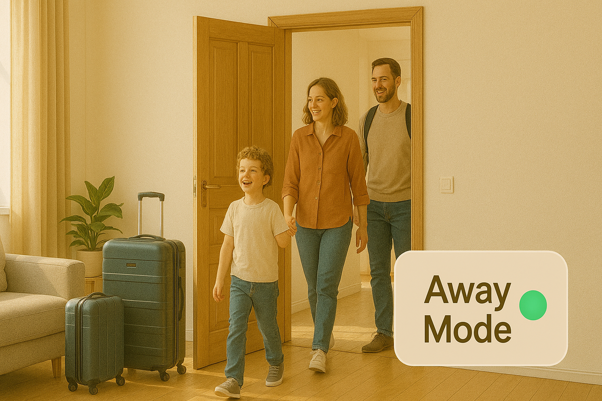 Всё продумано — свет по расписанию, охрана включена, отопление снижено до минимума. Уже в дороге пришло уведомление: «Режим отпуска активирован. Энергопотребление снижено на 60%». Всё как обычно.