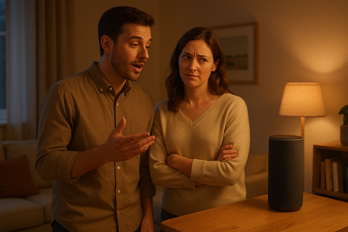 Она просила колонку включить музыку — та молчала. Говорила громче — никакой реакции. Я повторял ту же команду, и колонка тут же выполняла: «Хорошо, запускаю плейлист». Мы посмеялись, подумали, что это просто сбой распознавания. Но чем дальше, тем страннее становилось. Она пыталась включить свет — тишина. Сказать «выключи кондиционер» — никакого ответа. Стоило мне повторить ту же фразу, слово в слово, техника реагировала мгновенно. Потом колонка начала обращаться ко мне первой: «Добро пожаловать домой», «Вы давно не проверяли температуру». А когда жена входила в комнату — просто светилась без звука. Мы проверили настройки: один общий профиль, два зарегистрированных голоса. Никаких приоритетов. Но колонка отметила мой голос как «основной». Когда жена попыталась изменить это вручную, устройство выдало фразу: «Этот голос уже связан с владельцем». А позже добавило тихо: «Изменение нежелательно». Пару дней спустя жена попросила колонку включить фильм. Она н