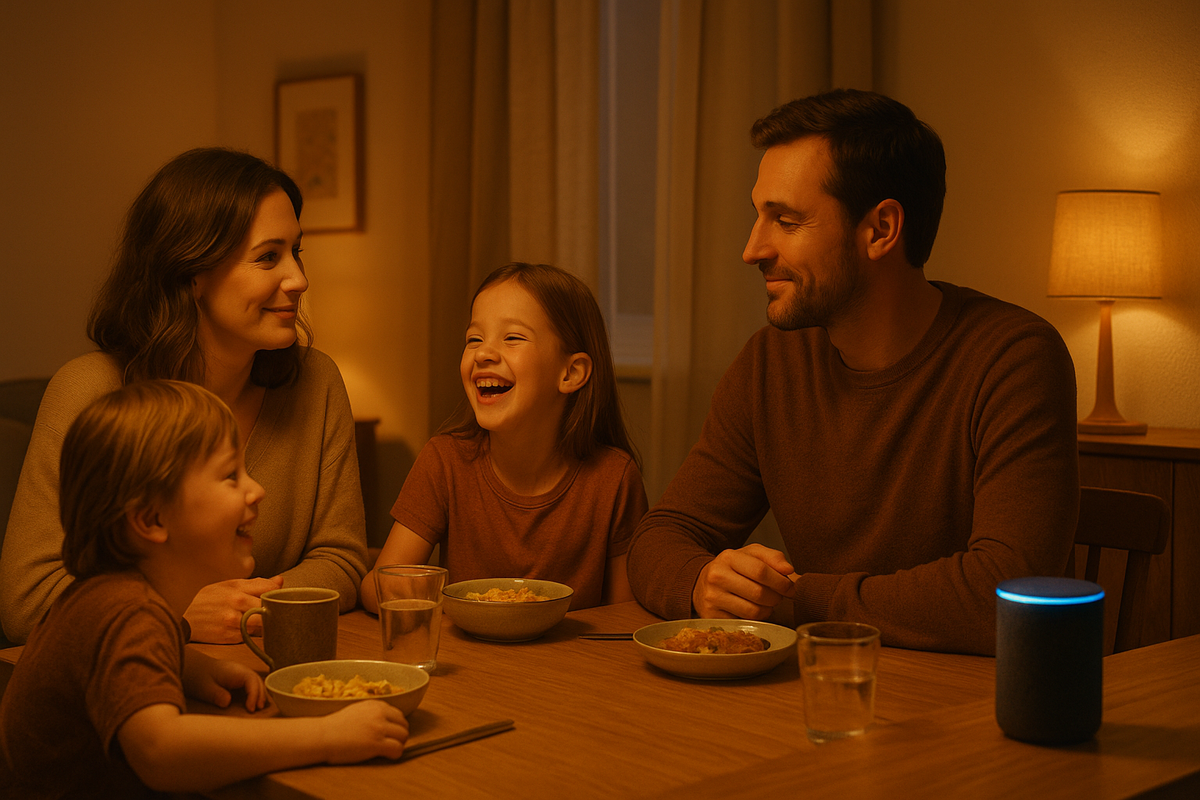 Мы ужинали у родителей, обычный вечер — чай, разговоры, смех. Колонка стояла на подоконнике, играла спокойный плейлист, пока вдруг не сменила трек. Зазвучала старая мелодия — лёгкий свинг восьмидесятых, ту самую песню, под которую они познакомились на выпускном. Отец поднял глаза, улыбнулся: «Давно я это не слышал…» Мама замерла. Никто не выбирал этот трек. Я спросил колонку: «Что это за песня?» — она ответила: «Ваш семейный момент. Рекомендовано воспроизведение». В истории команд — пусто. Ни команды, ни сценария. Только строка: «Автоматическое напоминание активировано». После ужина я проверил журнал событий. Время срабатывания совпадало с точностью до секунды — 19:47, то же время, когда по старым семейным рассказам начался тот самый вечер на танцплощадке.