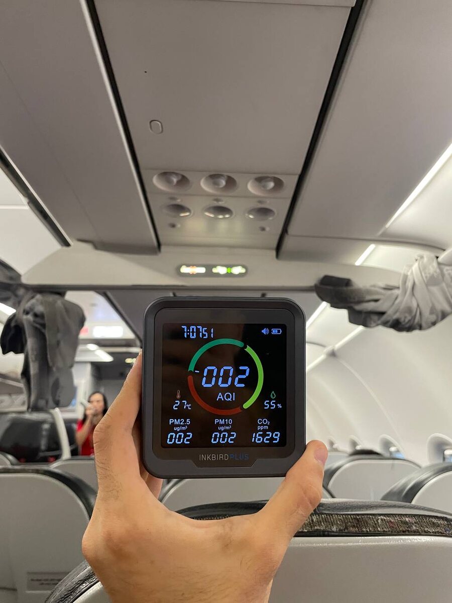Что вы знаете про уровень CO2 у вас дома? Фото уровня СО2 в самолете прикрепляю:)