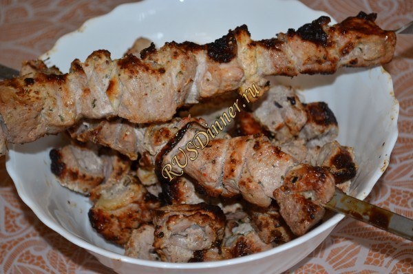 Шашлык из свинины на вине Ингредиенты: Свинина - 1000 гр. Лук репчатый - 5 шт. Майонез - 250 гр. (жирный) Лимон - 1 шт. (цедра, сок и мякоть без косточек) Вино красное - 100 мл. (любого вина) Соль - 20 гр. Приправа для шашлыка - 15 гр. Источник: https://rusdinner.ru/page/shashlyk-iz-svininy-na-vine