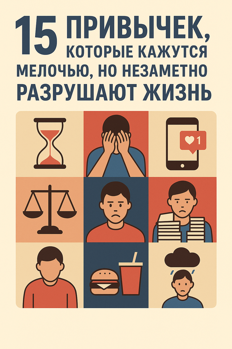 Если задуматься, большинство наших проблем не падают с неба внезапно — они растут из мелочей. Из маленьких ежедневных привычек, которые кажутся безобидными. Мы не замечаем, как они постепенно высасывают энергию, портят настроение и лишают нас уверенности. Сегодня я расскажу о 15 привычках, которые кажутся пустяками, но на самом деле незаметно разрушают жизнь.