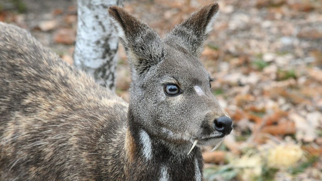 Ее отличительная особенность — длинные верхние клыки, из-за которых животное иногда называют «олень-саблезуб». Несмотря на устрашающий вид, кабарга — растительноядное и крайне робкое существо, предпочитающее укромные участки тайги и горных лесов.