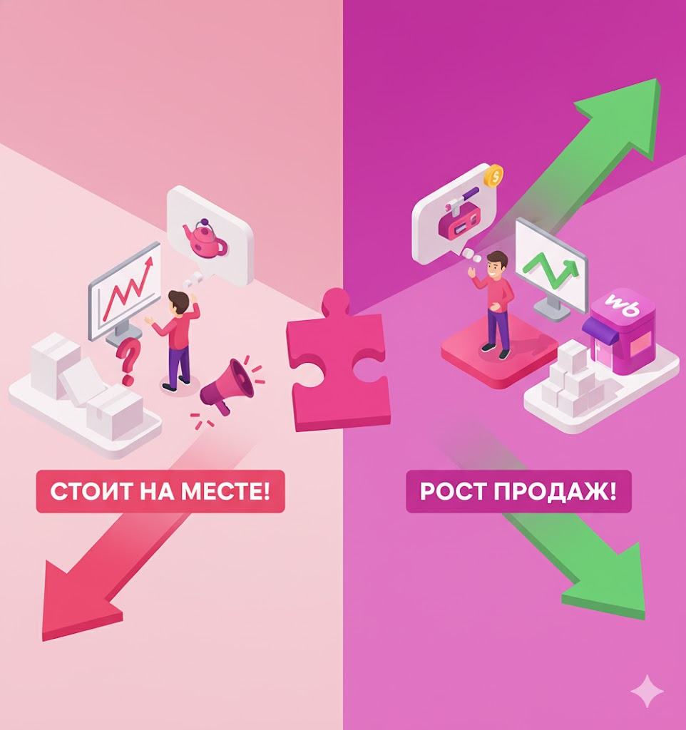 Многие поставщики тратят огромные усилия на продвижение, запускают рекламу у блогеров, но товар все равно «стоит на месте и не сдвигается с мертвой точки». Почему так происходит? Дело не только в креативе, но и в логике. Как показывает наш опыт, 80% успеха — это выбор правильного товара, который решает конкретную проблему покупателя. Мы поможем вам перестать выбирать товар, который просто «нравился» вам , и научиться видеть, какую проблему он на самом деле решает. Только так можно добиться стабильных продаж и прийти к росту. Устали гадать, какой товар выстрелит, и терять деньги на ошибках? Хватит полагаться на удачу! Успех на Wildberries — это не хаос, а логика и системный подход. Я не обучаю и не даю "волшебных" методик — я просто нахожу то, что работает, и помогаю своим клиентам получить не просто товар, а понимание, почему именно этот выбор приведёт к деньгам. Готовы прекратить работать с низкой маржой и начать зарабатывать от 50% прибыли? Переходите в мой Telegram-канал, где я дел