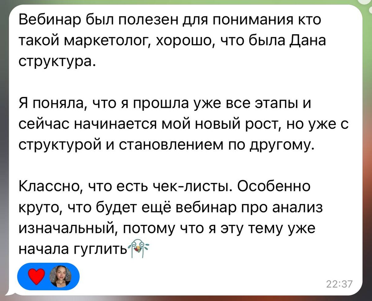 Уже вчера прилетело сообщение в личку — отзыв по вебинару, спасибо всем участникам, кто пишет и отмечает меня в своих соц сетях