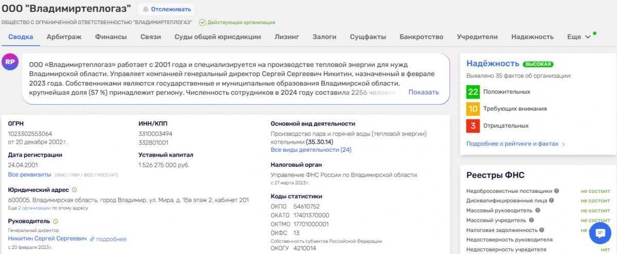 "Владимиртеплогаз": долгов перед банками у компании нет