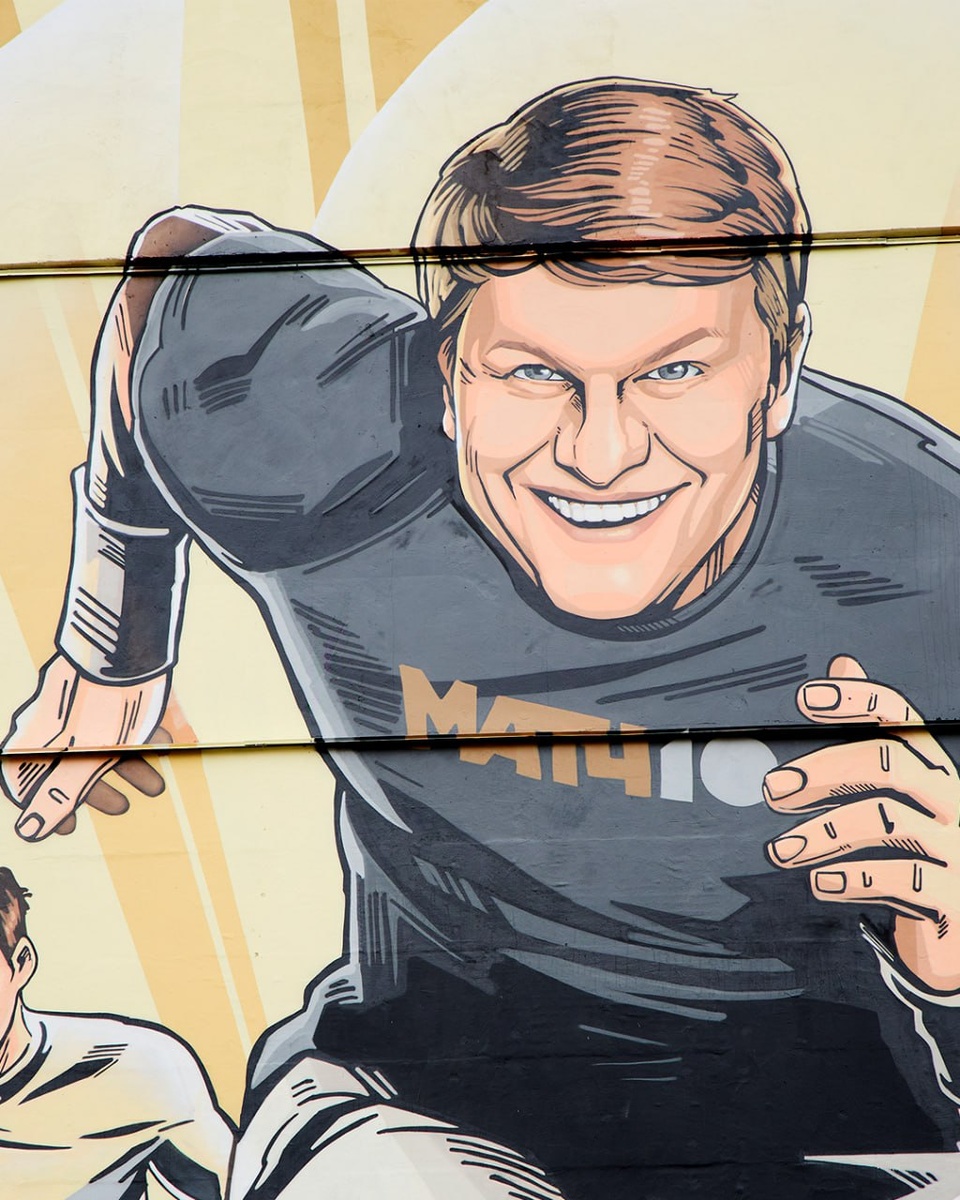 ΠΠ°ΡΠΈΡΠΎΠ²Π°Π½Π½ΡΠΉ ΠΠΌΠΈΡΡΠΈΠΉ ΠΡΠ±Π΅ΡΠ½ΠΈΠ΅Π² Π²ΠΎ Π³Π»Π°Π²Π΅ Π·Π°Π±Π΅Π³Π° ΡΠΊΡΠ°ΡΠΈΠ» ΡΠ°ΡΠ°Π΄ Π΄ΠΎΠΌΠ° ΠΏΠΎ ΡΠ»ΠΈΡΠ΅ ΠΠ΅ΡΡΠ΅Π½ΡΠΊΠ°Ρ, 20. Π₯ΡΠ΄ΠΎΠΆΠ΅ΡΡΠ²Π΅Π½Π½Π°Ρ ΠΊΠΎΠΌΠΏΠΎΠ·ΠΈΡΠΈΡ ΡΠΈΠΌΠ²ΠΎΠ»ΠΈΠ·ΠΈΡΡΠ΅Ρ Π΄ΠΈΠ½Π°ΠΌΠΈΡΠ½ΠΎΠ΅ ΡΠ°Π·Π²ΠΈΡΠΈΠ΅ ΠΊΠ°Π½Π°Π»Π° ΠΈ Π΅Π³ΠΎ ΡΡΡΠ΅ΠΌΠ»Π΅Π½ΠΈΠ΅ ΠΊ Π½ΠΎΠ²ΡΠΌ Π΄ΠΎΡΡΠΈΠΆΠ΅Π½ΠΈΡΠΌ.