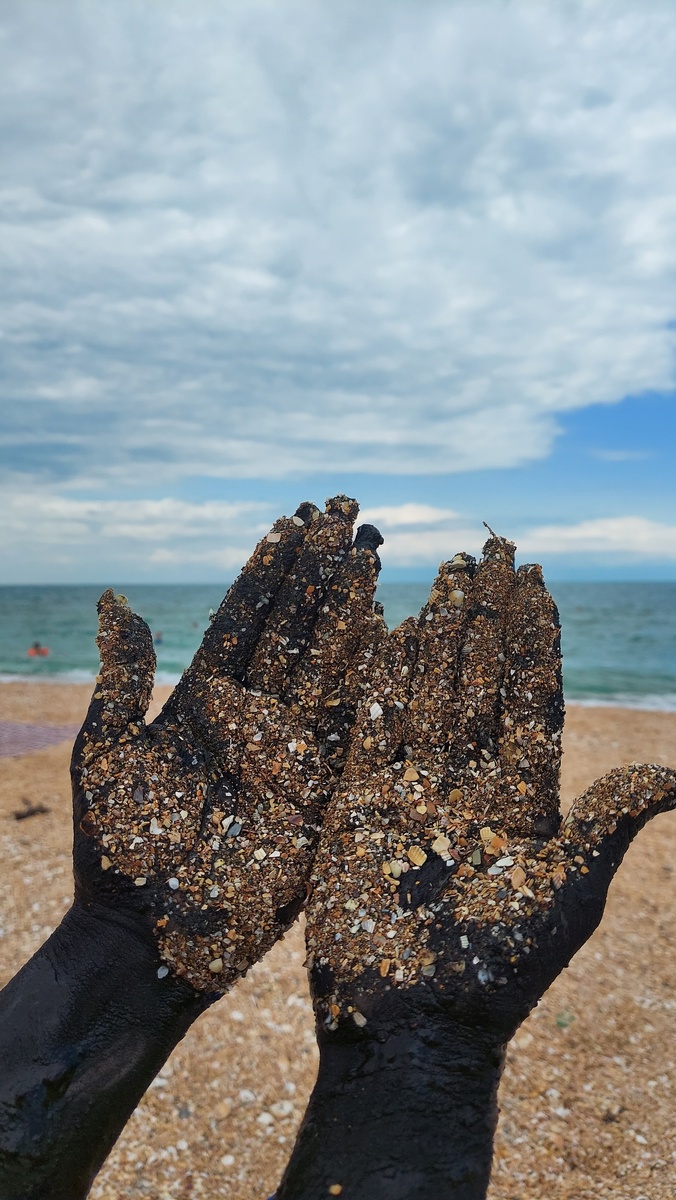 На следующий день отправились к озеру Чокрак. Его грязи целебные, хотела намазать свои ревматизмы так как кости вышли из чата недавно из-за отмены препаратов. Таких озер тут несколько. Кроме того 3 из них иногда розового цвета. Я надеялась, что Чокрак нас встретит именно таким в это время года, но увы. Так что если хотите инстаграмных фото, выясните когда оно розовое. Кстати, это не отменяет крутых фото. Грязь эта выглядит как нефть, а на женских телах как латекст. Экспериментируйте. Но есть противопоказания. В частности повышенное давление с которым, я туда полезла... В итоге и у меня и у сына болела голова на следующий день. Держать на себе грязь больше 15 минут нельзя. Переходите на другую сторону и смывайте всё в море, не без труда. Перед погружением в грязь наденьте купальник. Вернулись в Щёлкино в заповедник Казантипский. Неподалеку несколько лет проводился тот самый фестиваль. Не входя на охраняемую территорию спустились к морю. Тут виды офигенные. Встретили необычное явление: р