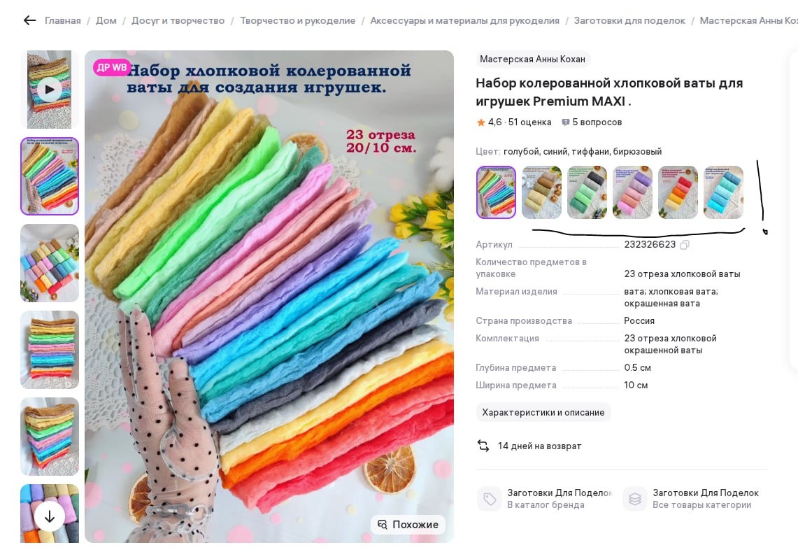 💥СНОВА В НАЛИЧИИ на ВБ 💥ВСЕ НАБОРЫ ХЛОПКОВОЙ ВАТЫ💥